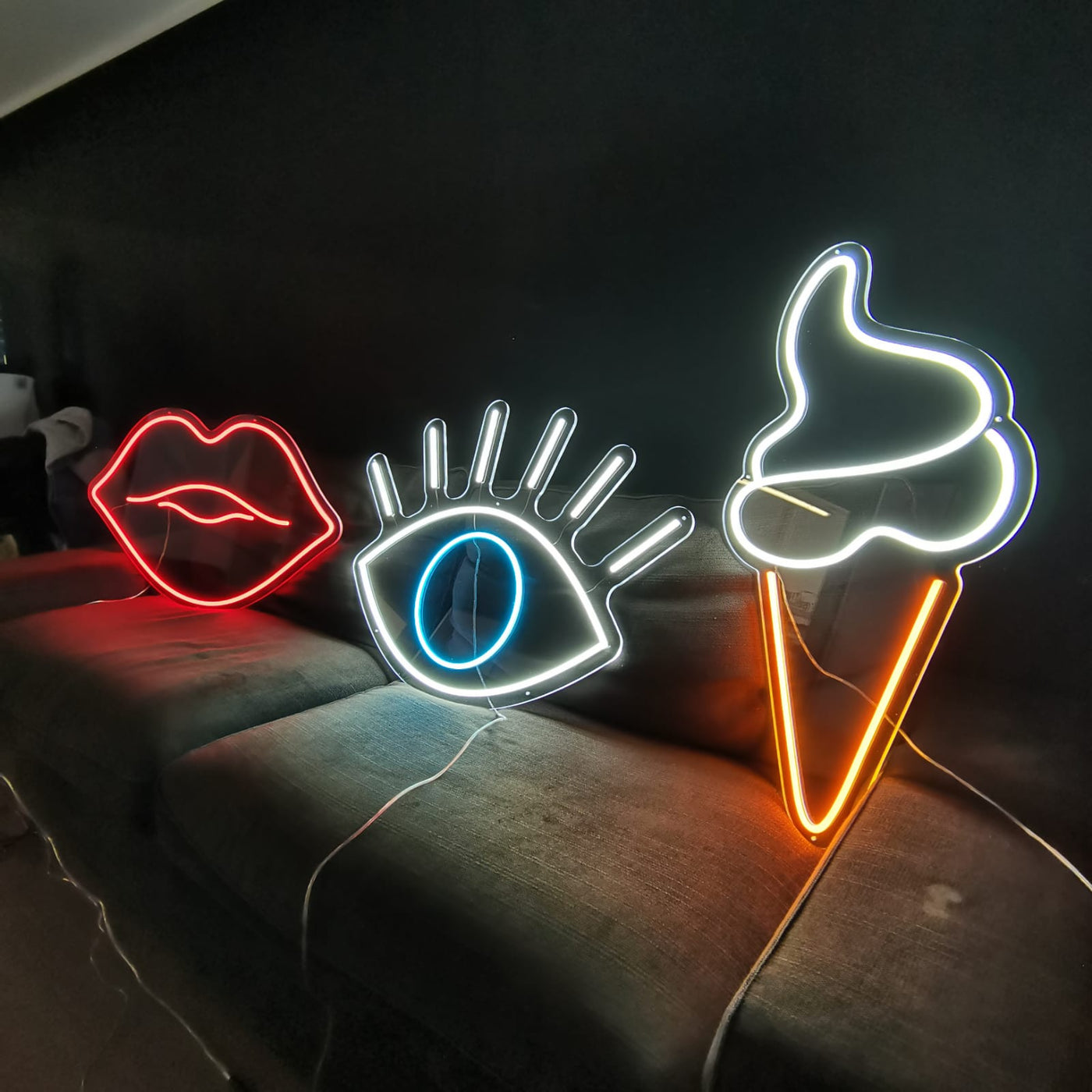 Le luci al neon non devono per forza essere messe in primo piano, ma sono molto utili anche per creare atmosfera, mettendole in punti strategici in secondo piano. Angoli, nicchie, sbalzi… da lontano l’effetto sarà quello tipico della luce colorata che va a sfumare. Avvicinandosi si potrà scoprire la piccola ‘installazione artistica’. Funzionano molto in questo caso le scritte in grado di suggerire uno stato emozionale, un mood. Oppure icone semplici e dirette, come quelle legate ai simboli e alle forme utilizzate nei social e nei sistemi di messaggistica.