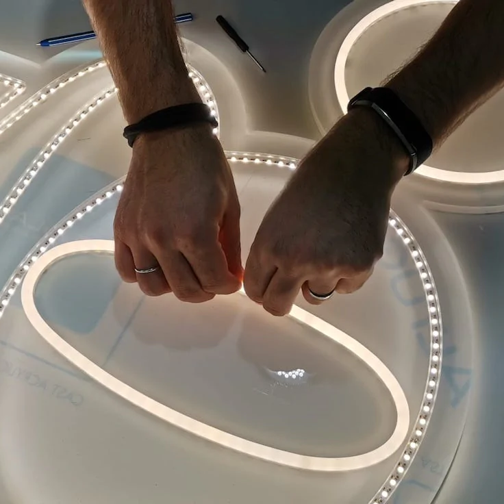 I nostri prodotti sono interamente realizzati a mano dai nostri esperti in Toscana, che utilizzano tubo flessibile Flex Neon Led. Una tecnologia resistente nel tempo, con il rivestimento in PVC che rende i neon led flessibili e durevoli, adatti alle più disparate esigenze. Le nostre soluzioni di illuminazione al neon possono essere utilizzate per creare praticamente qualsiasi segno, logo aziendale o display che si possa pensare.